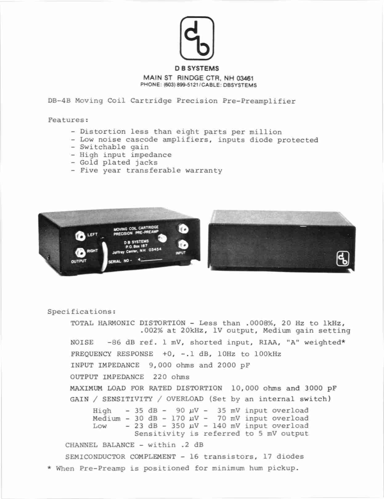 --DB-4 to DB-4B Gain increased by 5 dB, noise reduced by 4 dB + gold