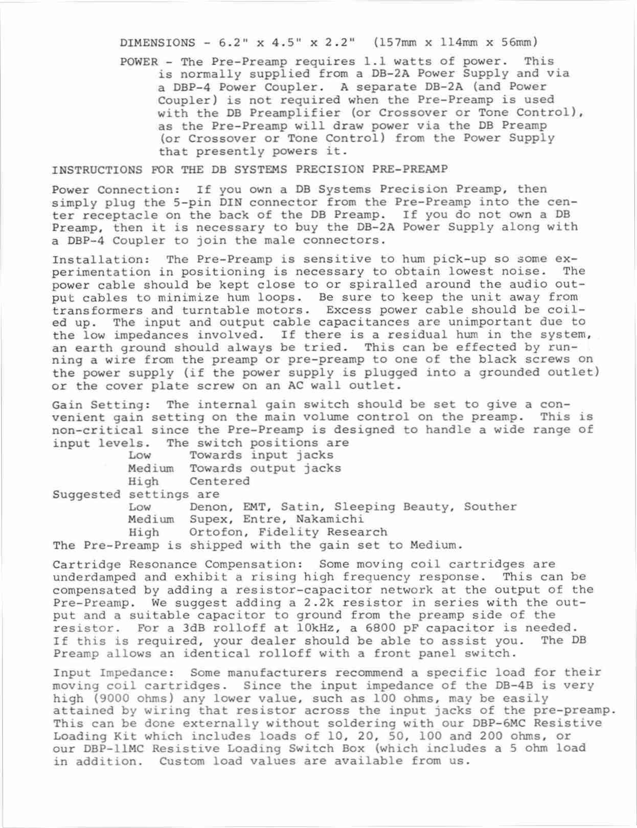 PRECISION PRE-PREAMPLIFIER (Requires DB-2A)