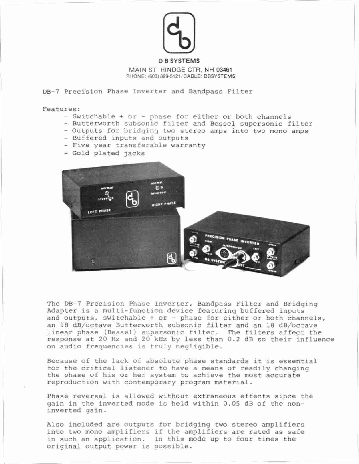 --DB-1 & DB-2 to DB-1A/2A Improved RIAA (.04 dB) and complete