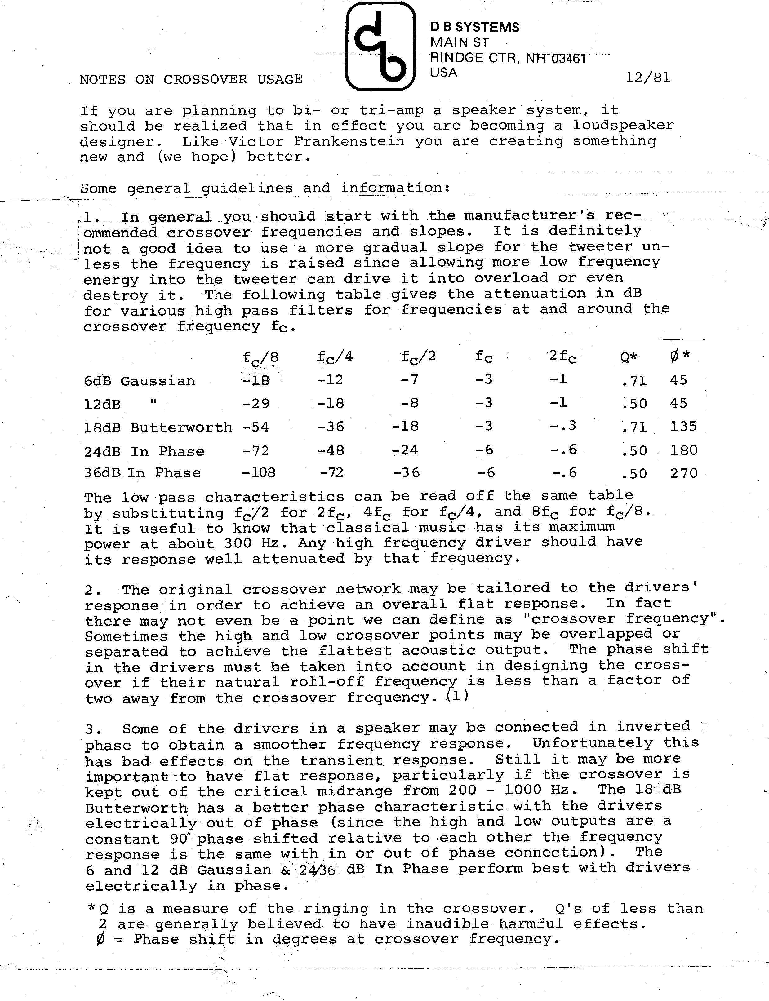 Audiogram Review of DB-3-24 In Phase Crossover