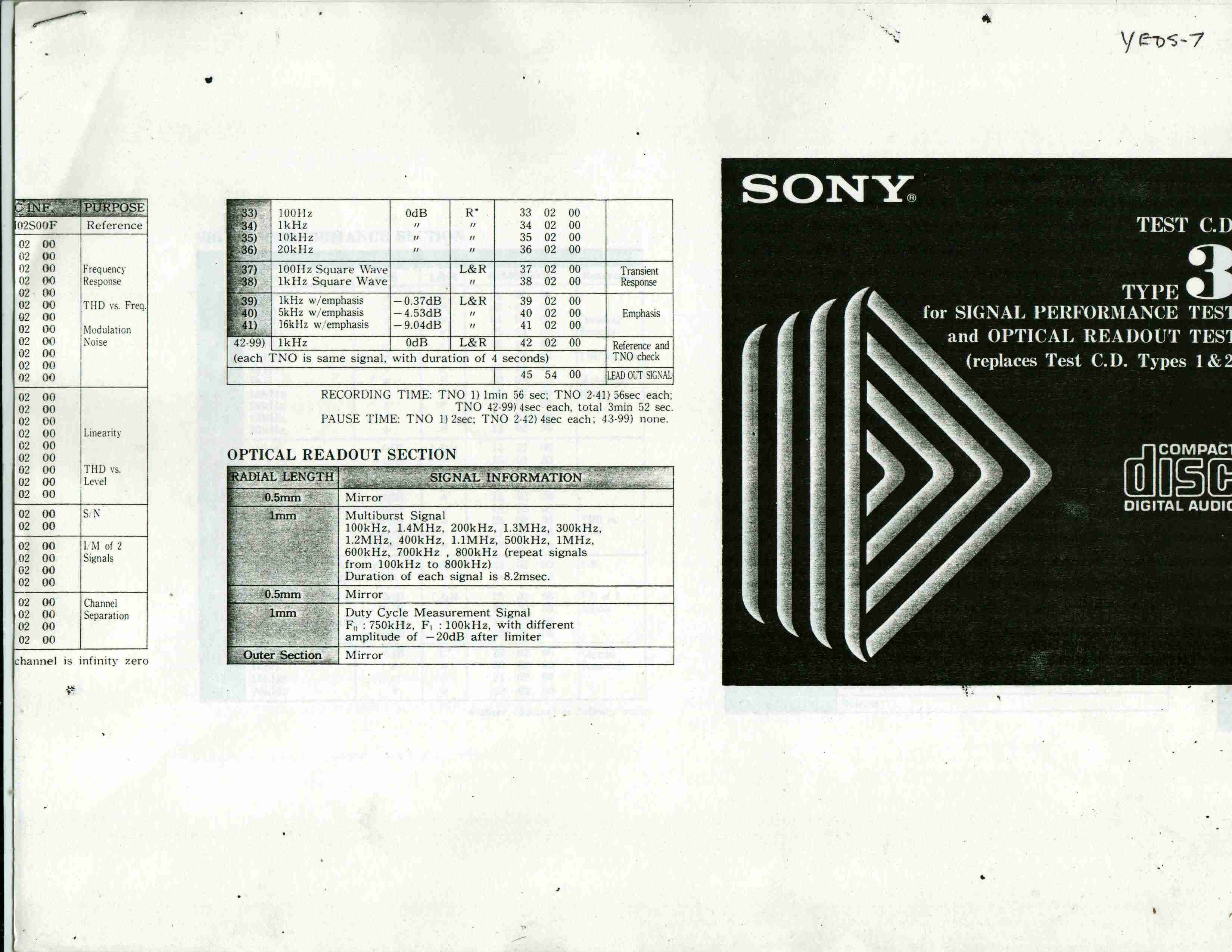 Sony -SN-0 YEDS-1 Alignment disc $130 O/P